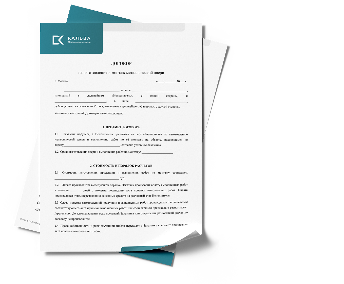 «Двери Кальва» — это собственное производство металлических входных дверей полного цикла. С 2004 года мы изготавливаем и устанавливаем двери в Снегирях и Московской области, обеспечивая высший уровень качества. Мы предлагаем решения для квартир, частных домов, коммерческих объектов и промышленных помещений: от стандартных моделей до эксклюзивных дверей на заказ по вашему проекту.